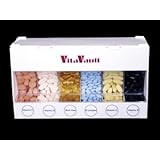(More customer reviews)I invented VitaVault. If you take vitamins or supplements you'll love VitaVault and you'll use it every time you take them. Unlike so many products that you use a few times and then put in the closet, you'll use your VitaVault for life. That's why we offer a lifetime warranty, and our email address and phone number come with each order. No more inconvenience opening every bottle and spilling your vitamins. Just lift the top lid and fill each compartment with up to a 60 day supply, then lift the lower lid and scoop them out as needed. Even those big fish oil capsules fit just fine. The clear front lets you see each vitamin and when to add more, and extra labels are included. VitaVault measures about 9" by 5" by 2" and fits in your medicine cabinet or on your countertop; one stacks on top of another too and best of all, VITAVAULT IS MADE IN USA.